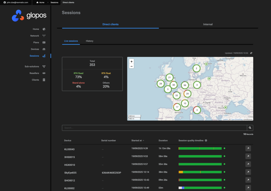 Keep your network running smoothly with a platform designed to take the hassle out of GNSS correction services. See real views from the live interface to explore how easy it is to manage users and track sessions. All in one place.